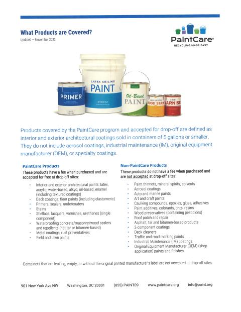 We have found that most of the items dropped off during Household Hazardous Waste collection events is paint. PaintCare Products (see flyer attached below) are accepted at the Transfer Station during regular business hours from May through October, there is no need to wait for a special collection event.