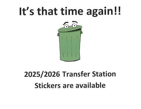 Transfer Station Stickers now available Come on in and get your Transfer Station stickers before the culvert construction project begins. Department: Transfer Station