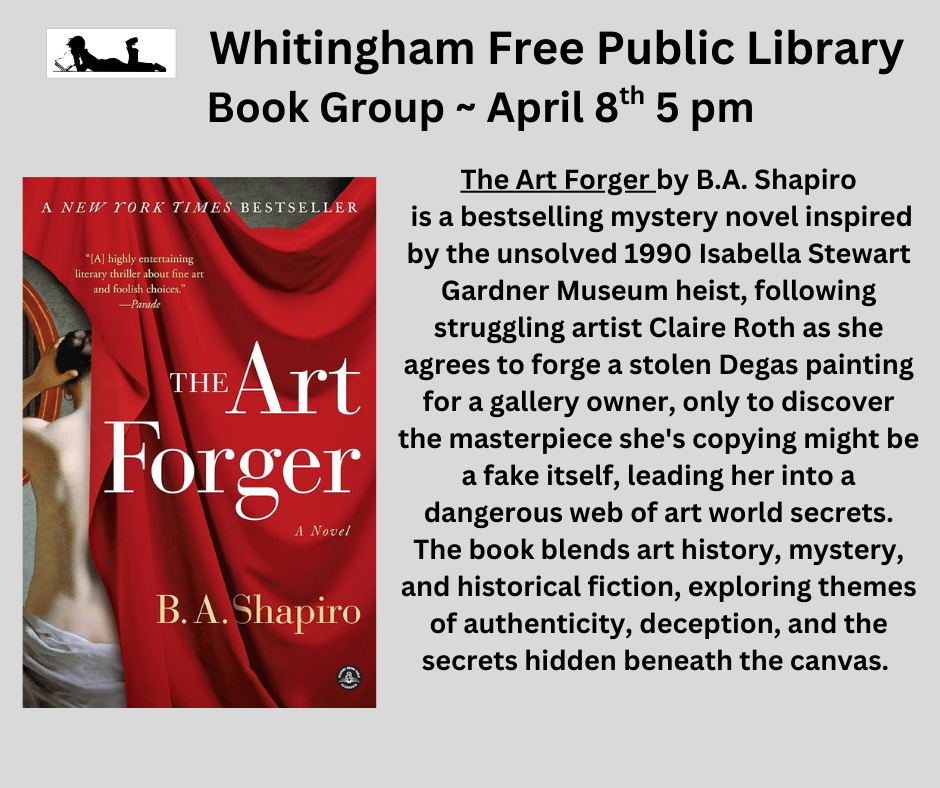 The Whitingham Library book discussion group meets the 2nd Wednesday of the month at 5 pm.