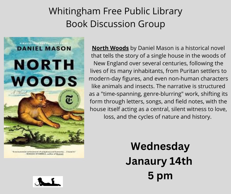 The Whitingham Library book discussion group meets the 2nd Wednesday of the month at 5 pm.