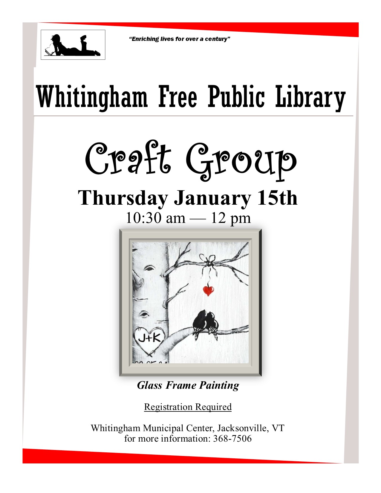 Craft Group meets the 3rd Thursday of the month at 10:30 am.